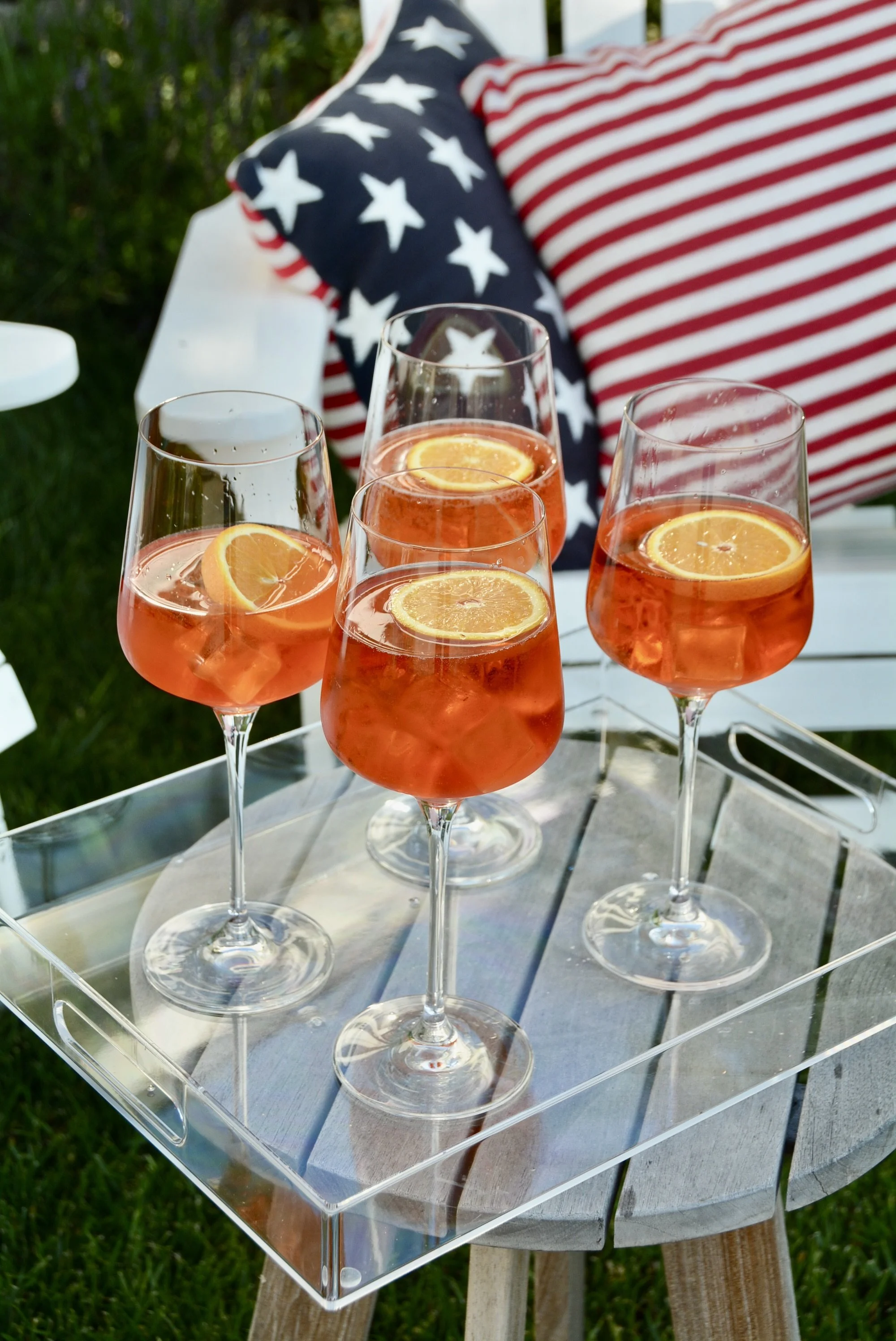 Rose is a go-to when it comes to summertime wine, and an Aperol Spritz is a go-to cocktail that makes everyone feel as though they’re sailing the Mediterranean. So why not combine the two for America’s favorite summer holiday? This Rose Spritz is sure to keep you refreshed and quench your thirst during the 4th of July barbecue. Plus, it’s a little more sophisticated than seltzers and beers that typically fill the coolers in the backyard, and- it’s pretty!