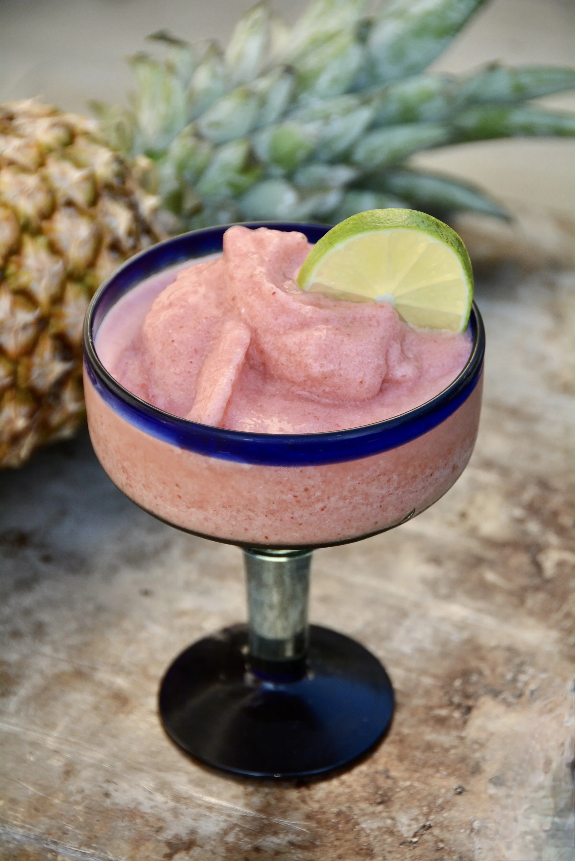 For those of you who’d rather skip the alcohol, or want to have something for the kids, this fan-favorite frozen drink is the perfect poolside sip. It is a virgin Miami Vice but we add the blue sugar rim for a full American flag effect along with cookie-cutter pineapple stars if you want to impress guests. Just add rum for the alcoholic version of this sweet treat!
