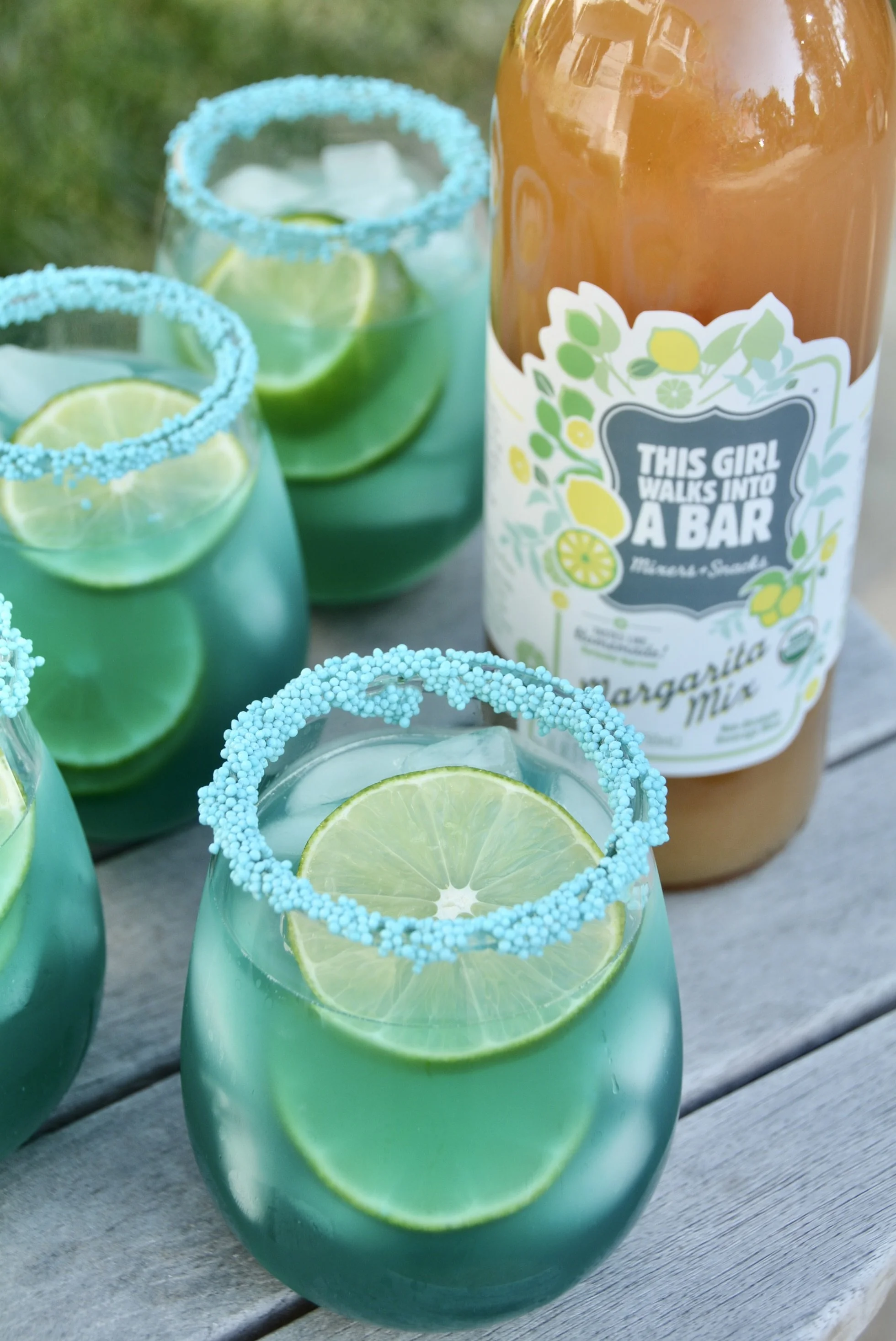 Nothing like an alcoholic version of your childhood drink of choice to make you feel young again. Sweet and tart with the help of our delicious margarita mix, this is guaranteed to become a favorite poolside cocktail this summer. Don’t forget the blue curacao and blue sugar rim that makes this drink ideal for an Independence Day-themed pool party.