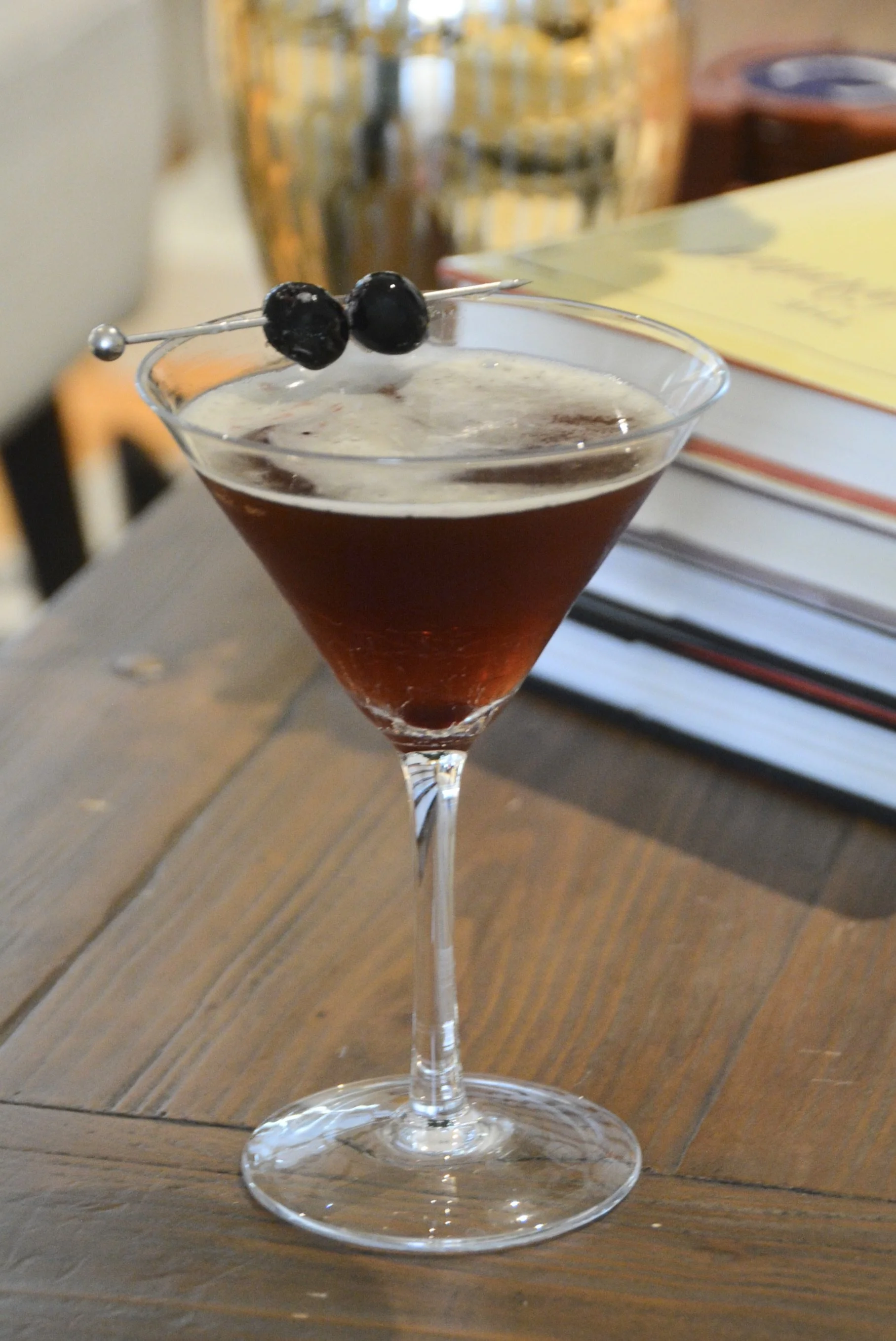 Fill a martini shaker with ice and add all the ingredients. Shake well to mix and pour into a martini glass or coupe. Garnish with a cherry and serve.