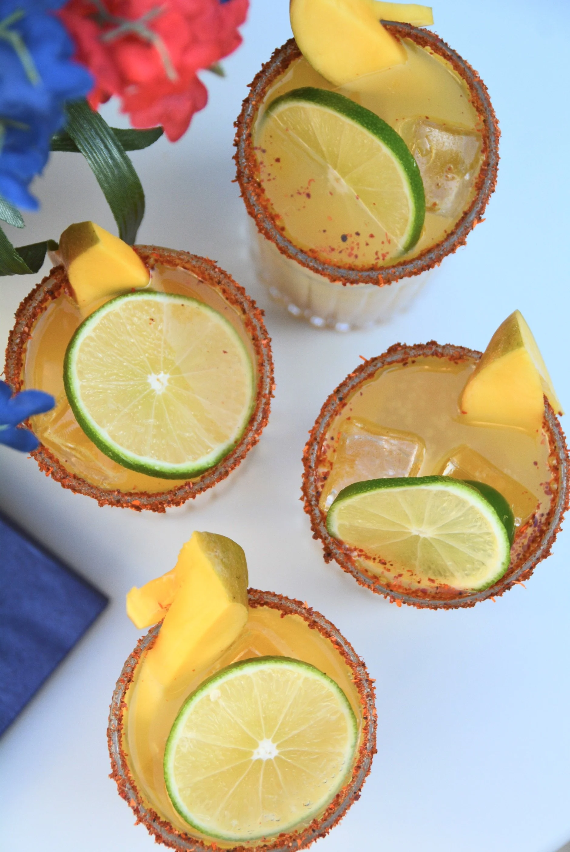 Fill a martini shaker with ice and add the tequila, mango nectar, Chinola, and sour/margarita mix. Shake well and strain into a highball filled with ice and rimmed with Tajín. Top with club soda and garnish with a lime.